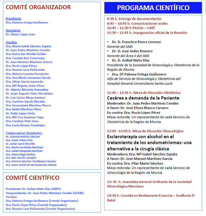La XXX Reunión de la Sociedad Ginecológica Murciana tuvo lugar el pasado 2 de abril en el Salón de Actos del Hospital General Universitario Santa Lucía.