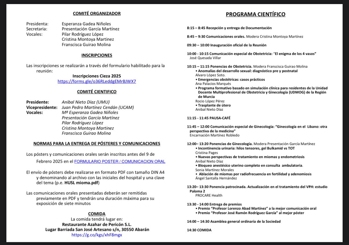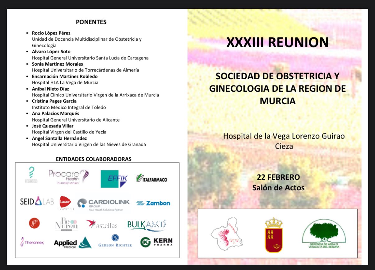 Todo un éxito la XXXIII Reunión de la Sociedad de Obstetricia y Ginecología de la Región de Murcia! celebrada el pasado 22 de febrero en el Hospital de La Vega Lorenzo Guirao de Cieza.